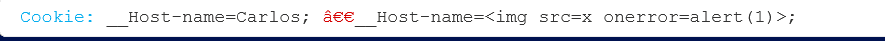 Angenommen, Sie entdecken eine XSS-Sicherheitslücke, bei der ein Cookie-Wert ohne ordnungsgemäße Escape-Zeichen in eine Webseite übernommen wird. Die Anwendung verwendet ein Cookie mit dem Präfix „__Host-“, das normalerweise aufgrund von browser-seitigen Einschränkungen das Überschreiben durch nicht vertrauenswürdige Subdomains verhindert. Mit einer der zuvor beschriebenen Techniken injizieren Sie jedoch mithilfe von JavaScript ein gefälschtes „__Host-name“-Cookie: