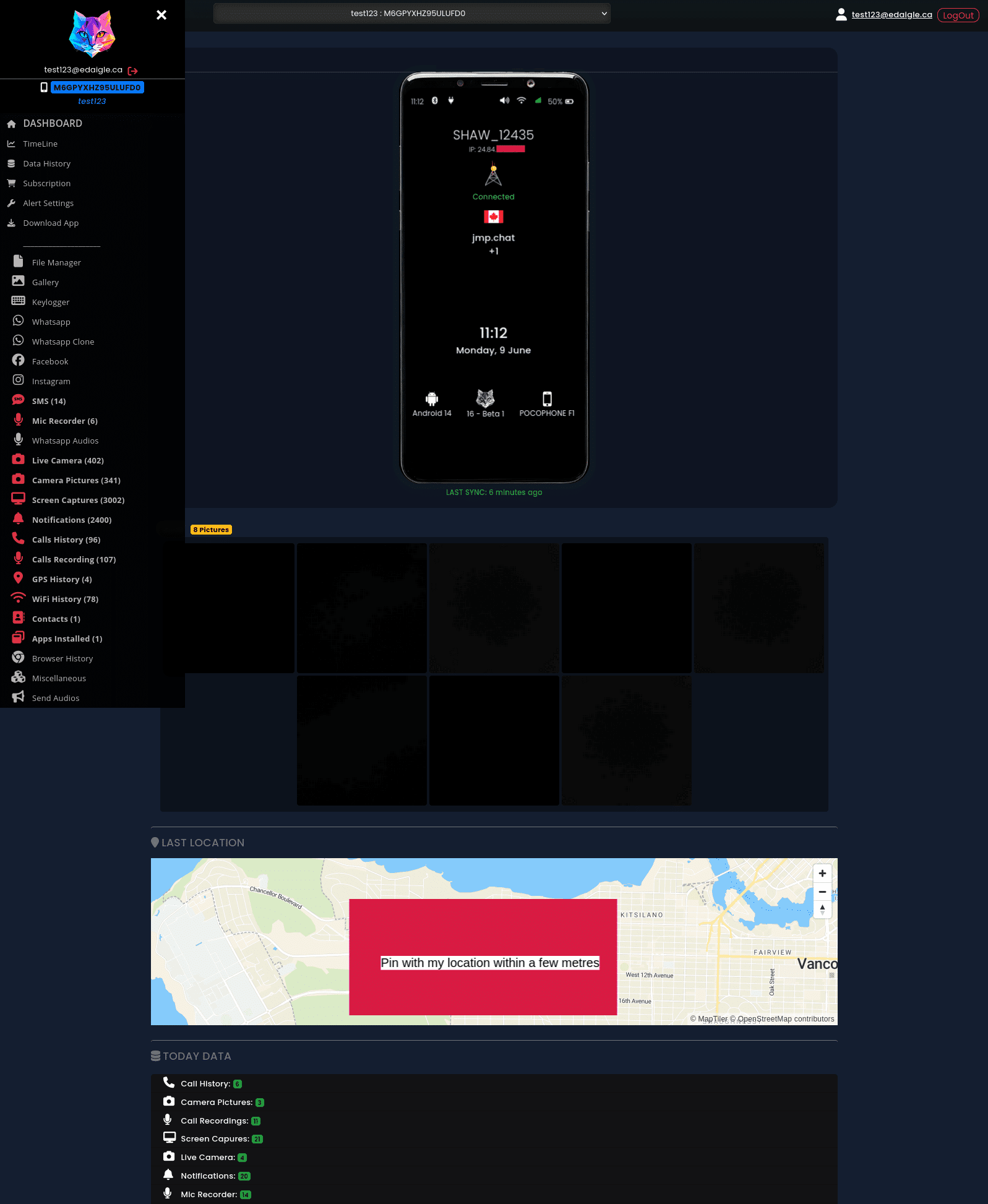 Besonders beunruhigend waren für Daigle die Live-Foto- und Mikrofonfunktionen. Ohne jede Benachrichtigung oder sichtbare Aktivität auf dem Zielgerät konnten Fotos aufgenommen und Tonaufnahmen gemacht werden, die innerhalb von Sekunden im Kontrollpanel erschienen – für den betroffenen Nutzer vollkommen unbemerkt.