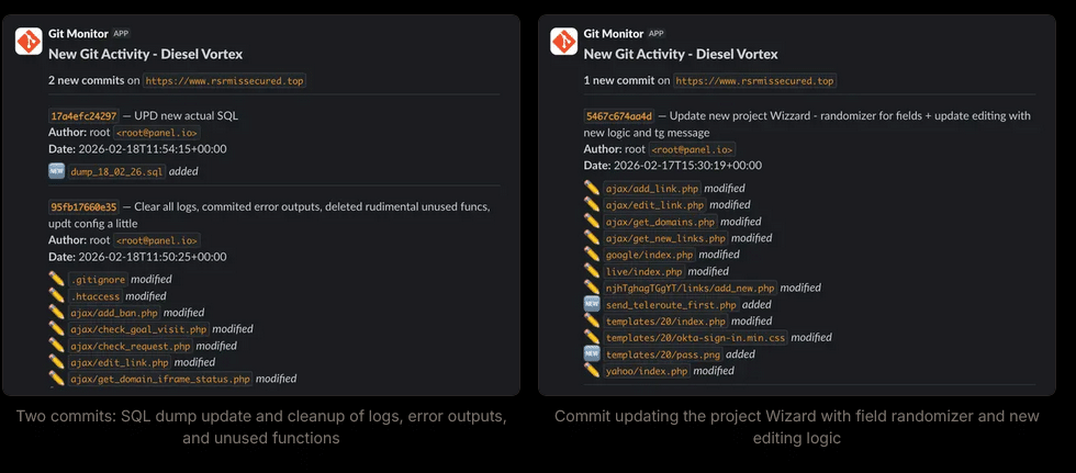Die ursprüngliche Panel-Domain wurde am 23. September 2025 registriert und bereits rund 17 Tage später vom Registrar gesperrt – vermutlich infolge einer Missbrauchsmeldung. Jede nachfolgende Panel-Domain verwendete einen anderen Registrar, was auf eine bewusste Anpassung nach der ersten Sperrung hindeutet. Spätere Commits im Repository zeigen zudem Anzeichen für die Vorbereitung einer breiteren kommerziellen Vermarktung: Testkonten, Zahlungsinfrastruktur und Bereitstellungsdokumentation wurden in den Wochen vor der Entdeckung aktiv hinzugefügt. Die gesamte Infrastruktur stützte sich ausschließlich auf missbrauchte legitime Dienste – GitLab für Versionskontrolle, Telegram für Befehle, Zoho und Zeptomail für den E-Mail-Versand.