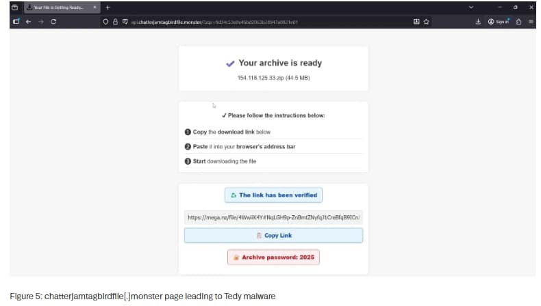 Abbildung 5: chatterjamtagbirdfile[.]monster-Seite, die zur Tedy-Malware führt