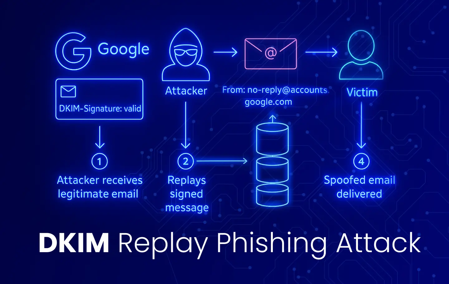 Die böswillige Aktivität wurde als DKIM-Replay-Angriff charakterisiert, bei dem der Angreifer zunächst ein Google-Konto für eine neu erstellte Domain („me@<domain>“) und anschließend eine Google OAuth-Anwendung mit einem Namen erstellt, der den gesamten Inhalt der Phishing-Nachricht enthält.