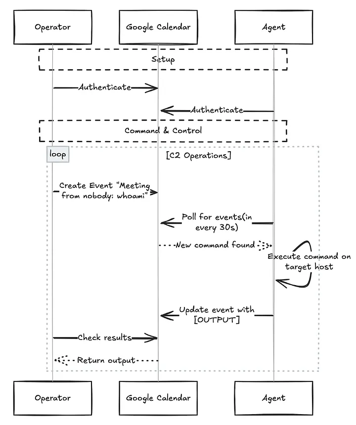 MeetC2, auch bekannt als MeetingC2, ist eine plattformübergreifende Anwendung (macOS/Linux), die zeigt, wie legitime Cloud-Dienste für feindliche Operationen missbraucht werden können. Mithilfe der Google Kalender-APIs erstellt das Framework einen versteckten Kommunikationskanal, der sich in den normalen Geschäftsverkehr einfügt.