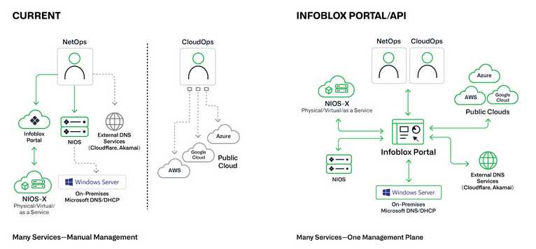 Einheitliche Verwaltung: Universal DDI unterstützt nun neben internen Umgebungen und den Cloud-DNS-Diensten von Amazon, Microsoft und Google auch führende externe DNS-SaaS-Anbieter wie Cloudflare und Akamai. Teams können DNS-Einträge für interne Netzwerke, öffentlich zugängliche Anwendungen und Multi-Cloud-Umgebungen über eine einzige Oberfläche und API einsehen und verwalten. Einheitliche Workflows und Automatisierungen lassen sich damit auf alle DNS-Bereiche anwenden, was das Risiko von Konfigurationsfehlern – einer häufigen Ursache für Ausfallzeiten – reduziert.