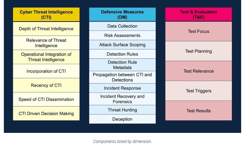 Die Dimensionsgewichtung wurde ebenfalls angepasst. Cyber Threat Intelligence macht 35 Prozent aus, defensive Maßnahmen 40 Prozent und Tests sowie Evaluierungen 25 Prozent. Die Komponenten innerhalb dieser Dimensionen wurden entsprechend ihrer strategischen Bedeutung neu verteilt und erweitert.