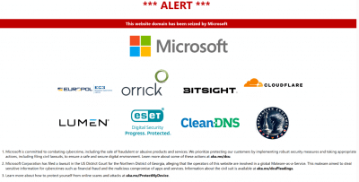 Hinweisseite auf über 900 von Microsoft beschlagnahmten Domains