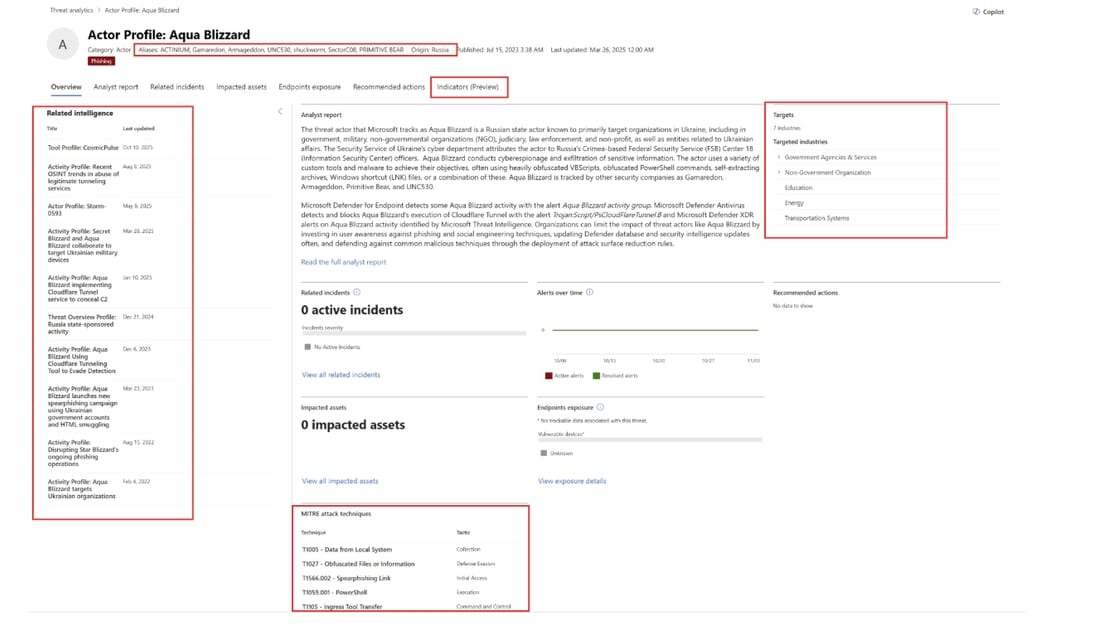 Related Intelligence: Verknüpfungen zu verwandten Berichten und Alias-Namen von Akteuren oder Tools erleichtern die Korrelation mit branchenweiten Entwicklungen.