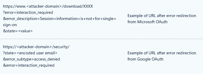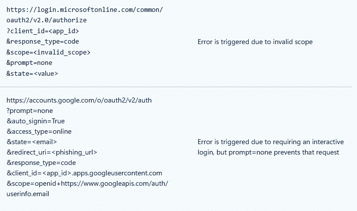 Aus Sicht der Angreifer ist dieser fehlgeschlagene Vorgang dennoch informativ: Er verrät, ob das Benutzerkonto existiert und ob stilles Single Sign-on aktiv oder blockiert ist – wertvolle Metainformationen für die weitere Vorgehensweise. Dieses Vorgehen ist nicht auf Microsoft oder Google beschränkt; prinzipiell lässt es sich bei jedem OAuth-kompatiblen Dienst anwenden.