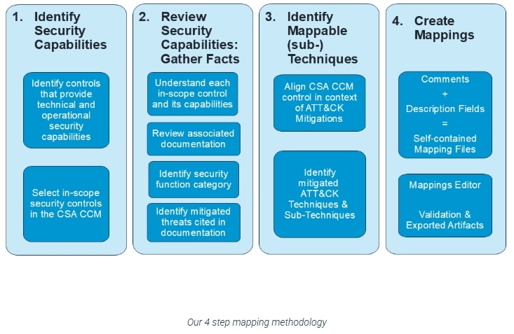 Gemeinsam mit den CTID-Partnern Citigroup, Cloud Security Alliance, CrowdStrike, Fortinet und JPMorgan Chase Bank N.A. wurden Cloud-spezifische Sicherheitsfunktionen mit den im MITRE ATT&CK-Framework dokumentierten Angreifertechniken verknüpft. Als Grundlage diente die Cloud Controls Matrix (CCM) der Cloud Security Alliance.