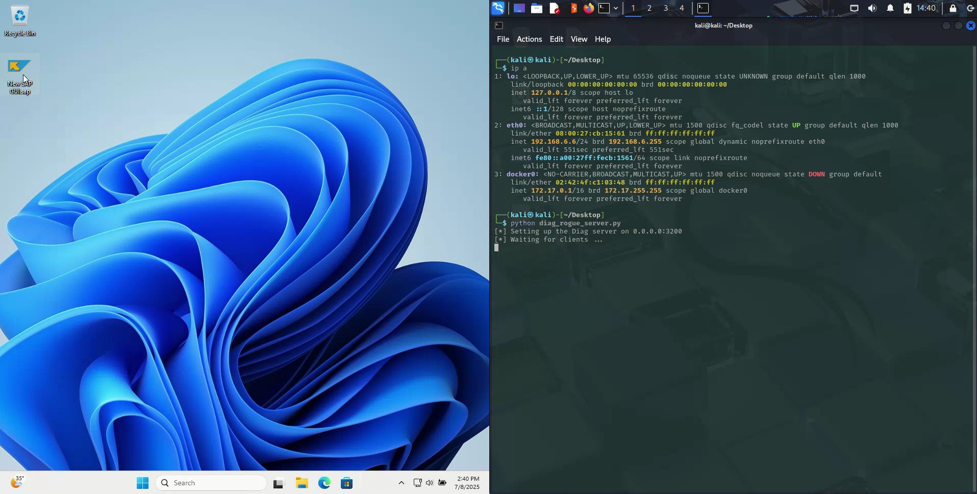 - Betrügerischen Server ausführen: Der Angreifer führt ein benutzerdefiniertes Skript auf seinem Server aus, um auf eingehende SAP-GUI-Verbindungen zu warten.