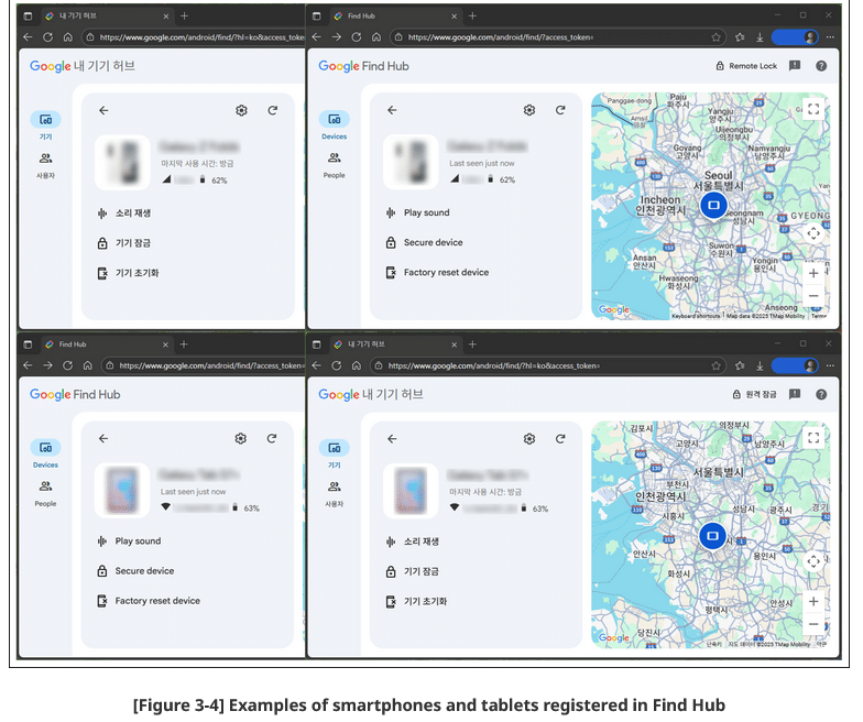 Mit gestohlenen Google- und Naver-Zugangsdaten verschafften sich die Angreifer vollständige Kontrolle über Konten und missbrauchten Find Hub, um mehrere Fernlöschbefehle auf Android-Geräten auszuführen. Selbst nach erfolgreichem Zurücksetzen wurden die Befehle mehrfach wiederholt, was die normale Nutzung erheblich störte. Parallel dazu nutzten die Angreifer das kompromittierte KakaoTalk-Konto, um weitere Malware schnell zu verbreiten. Opfer erlitten Informationsdiebstahl, Datenverlust auf mobilen Geräten und Kontokompromittierung.