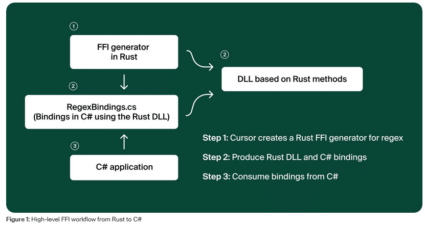 Für die rasche Implementierung setzte das Team auf Cursor, ein KI-gestütztes Entwicklungswerkzeug. Der Auftrag lautete: Entwicklung eines schlanken C#-Wrappers für die Rust-Regex-Bibliothek unter Verwendung eines FFI-Frameworks.
