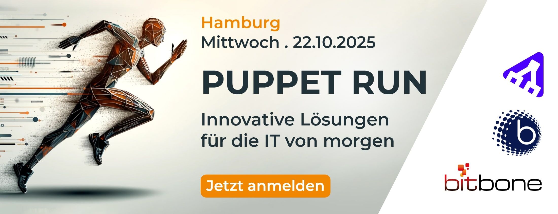 Auch in diesem Jahr veranstaltet Puppet gemeinsam mit den Partnern betadots GmbH und bitbone AG einen informativen Tag rund um das Thema IT-Automatisierung, DevOps und Cloud-Technologien. Kunden und Interessenten können sich darüber austauschen, wie Puppet Unternehmen dabei unterstützt, ihre Infrastrukturen für aktuelle und kommende Herausforderungen zu wappnen. Der Puppet Run 2025 findet am 22. Oktober 2025 im elbdeck in Hamburg statt.
