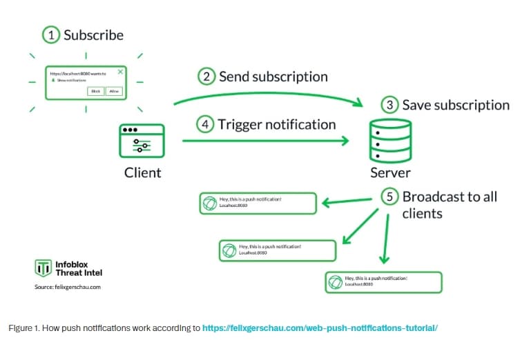 Die Untersuchung begann im Januar 2025, als das Infoblox-Team bewusst eine kompromittierte Website besuchte und Push-Benachrichtigungen abonnierte. Mit diesem Klick wurde ein Service Worker auf das Testgerät heruntergeladen. Das Telefon begann daraufhin ständig zu vibrieren – es kam zu über 100 Benachrichtigungen täglich.
