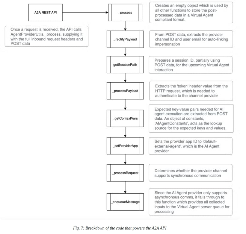 Die eigentliche Schwere der Schwachstelle ergab sich aus der Implementierung des Agent-zu-Agent-Protokolls. Die A2A Scripted REST API formatiert eingehende Daten in die Struktur der Virtual Agent API um und fügt sie in die Warteschlange des Virtual Agent-Servers ein.