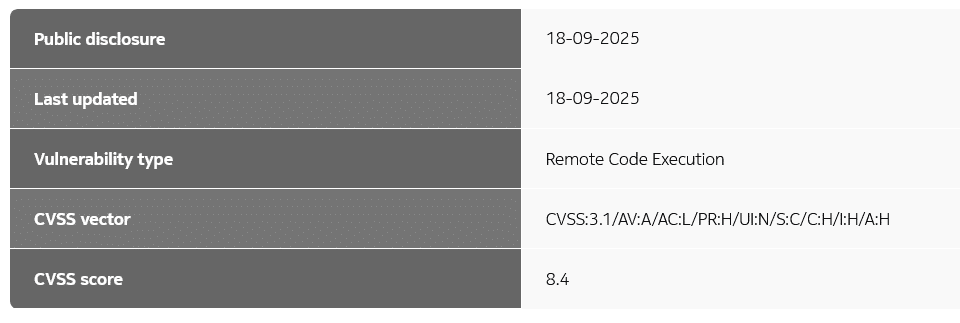 Die Schwachstelle wurde am 18. September 2025 von Orange Cert öffentlich gemacht, nachdem Sicherheitsexperten sie bei einer Routineprüfung entdeckt hatten.