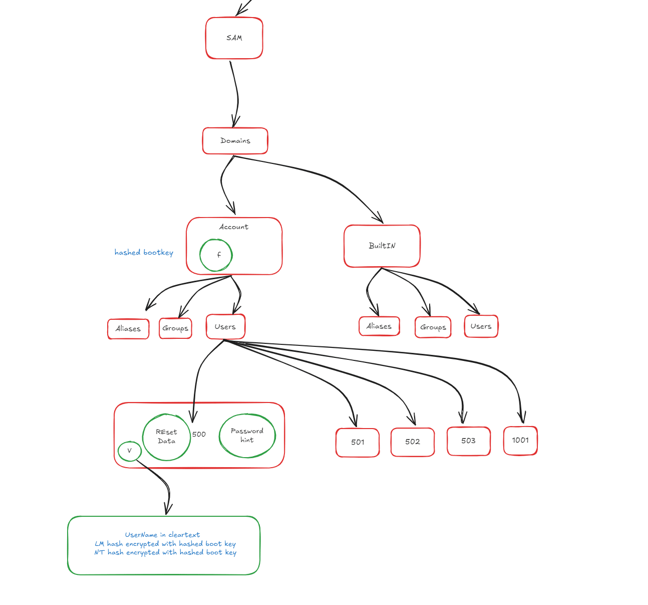 - Benutzeranmeldeinformationen werden in der SAM-Struktur gespeichert (siehe Abbildung unten).