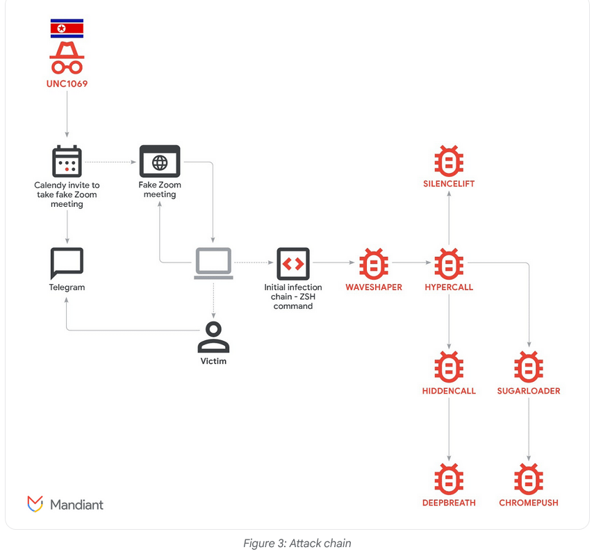 Sicherheitsforscher von Mandiant haben einen gezielten Cyberangriff untersucht, der sich gegen ein Unternehmen aus dem Kryptowährungssektor richtete. Die Attacke erfolgte durch UNC1069, eine seit 2018 aktive Gruppe mit mutmaßlichen Verbindungen nach Nordkorea. Der Vorfall zeichnet sich durch einen komplexen Angriffsablauf aus, bei dem kompromittierte Telegram-Konten, gefälschte Videokonferenzen und möglicherweise KI-generierte Videos zum Einsatz kamen.
