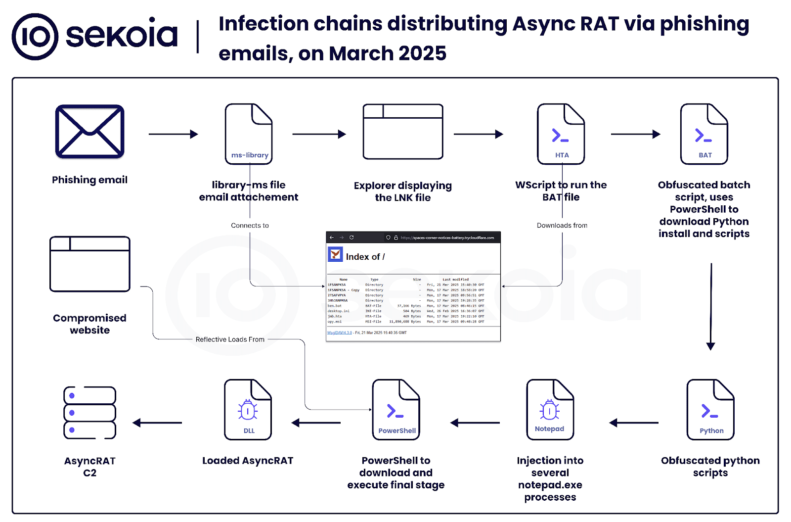 Dieser Bericht konzentriert sich auf eine der jüngsten Infektionsketten, die auf die Cloudflare-Tunnelinfrastruktur zurückgreift und den AsyncRAT verbreitet. Dabei beleuchtet er die Taktiken, Techniken und Verfahren (TTPs) der Angreifer mit besonderem Fokus auf Erkennungsmöglichkeiten. Anhand konkreter Beispiele wird gezeigt, wie die Sekoia Defend-Plattform verschiedene Phasen des Angriffs mithilfe spezifischer Erkennungsregeln identifiziert – diese werden im Abschnitt „Technische Details“ näher erläutert.