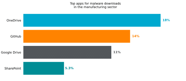 Cloud-Dienste bergen jedoch Malware-Risiken: 22 von 10.000 Nutzern stoßen monatlich auf schädliche Inhalte. Häufig betroffen sind OneDrive (18 %), GitHub (14 %) und Google Drive (11 %).