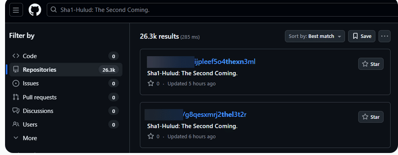 Sicherheitsanalysten identifizierten bislang nahezu 500 betroffene Pakete mit kombiniert dreistelligen Millionen monatlicher Downloads. Die Malware veröffentlichte gestohlene Geheimnisse in über 26.000 öffentlich einsehbaren GitHub-Repositories mit der charakteristischen Beschreibung „Sha1-Hulud: The Second Coming“. Untersuchungen zeigen, dass einige Community-Pakete lediglich den Staging-Code enthielten, nicht jedoch die vollständige Wurm-Komponente. Diese Implementierungsfehler der Angreifer begrenzen die unmittelbaren Auswirkungen möglicherweise.